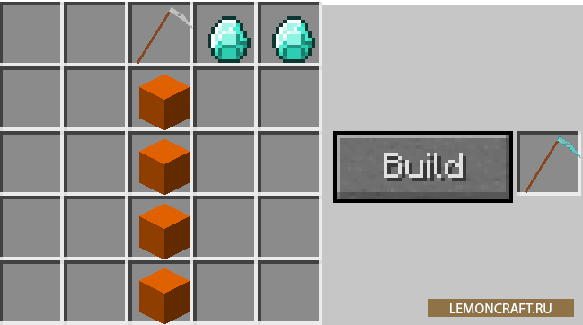 Мод на большие инструменты Big Weapons добавляет в игру новый инструмент и оружие, которые будут отличаться от своих ванильных собратьев большим размером. Для крафта нового инструмента вам понадобится больше инструмента и специальный блок с сеткой 5х5.