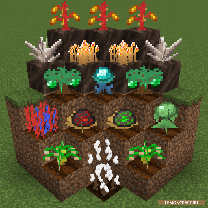 Мод на растения с ресурсами Cultivation добавляет в игру возможность получать ванильные ресурсы с помощью специальных растений. Теперь вам не нужно исследовать шахты и подземелья, достаточно посадить растение и оно даст вам нужный ресурс.